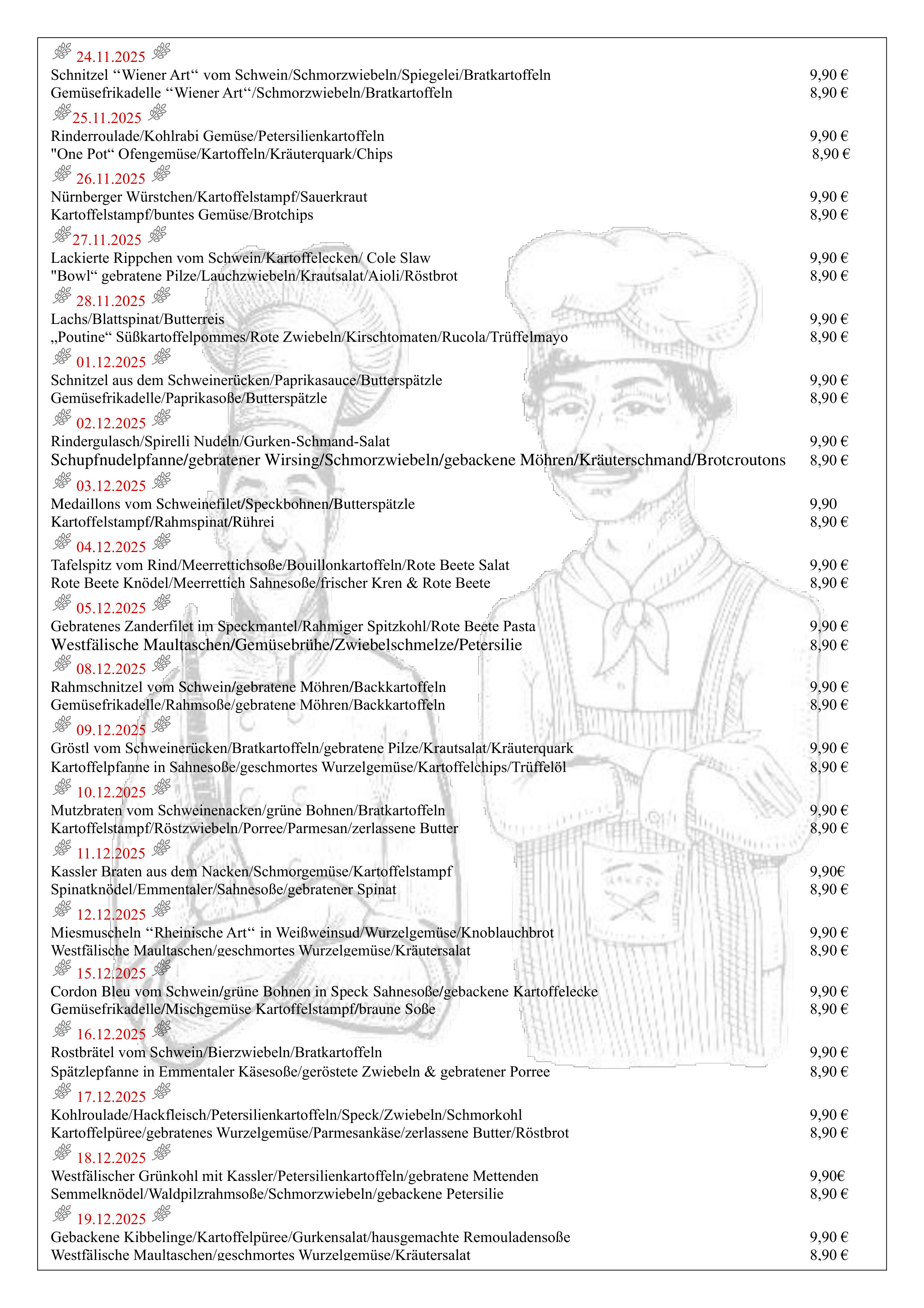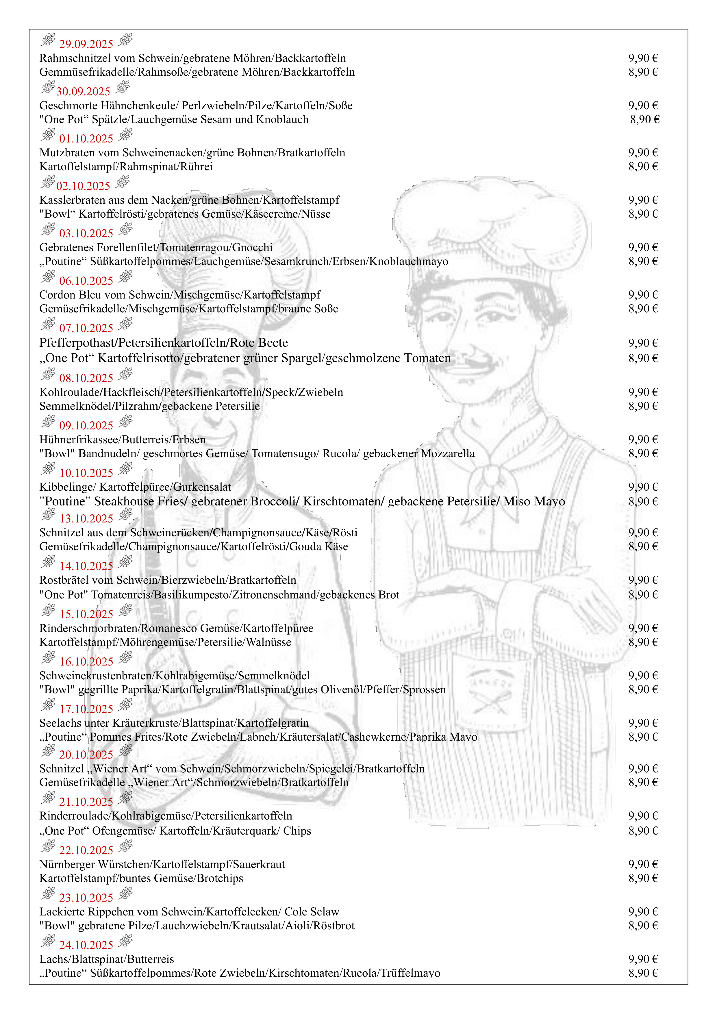 Hier gibt es einen Ausblick auf unsere Speisekarte für die nächsten 4 Wochen