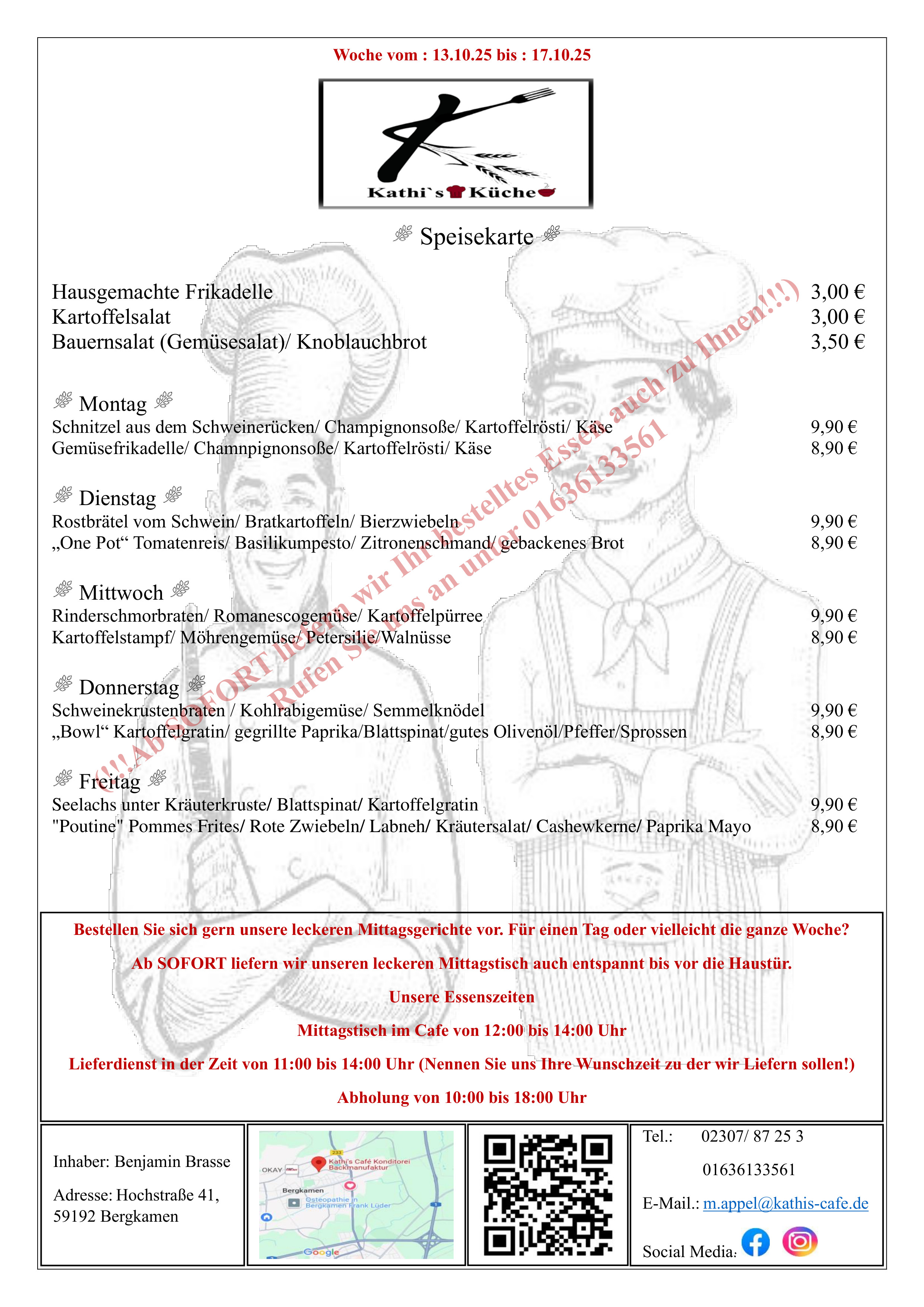Ab sofort bringen wir unsere leckeren Speisen aus Kathis Küche auch zu Ihnen.